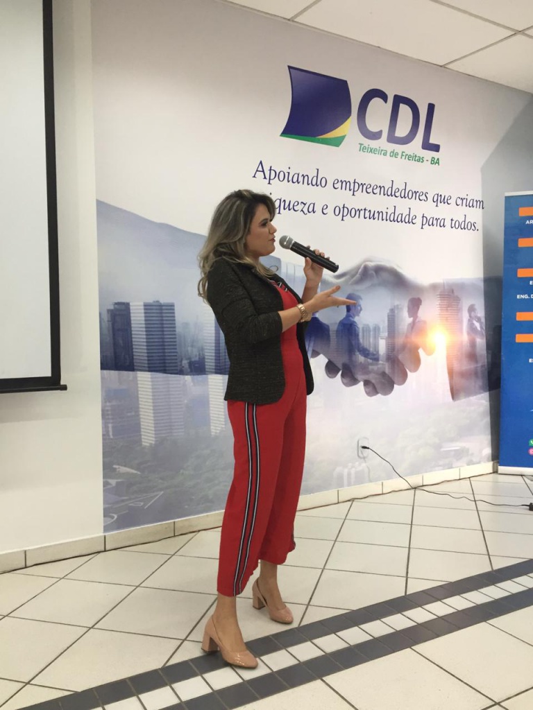 A Gerente da CDL Nayara Guedes abriu o ato, com uma dinâmica e agradecendo a presença de todos, dizendo que esta palestra seria o início de muitas outras promoções da CDL com o objetivo de valorizar o elemento feminino, que é parte expressiva do seu rol de associados.